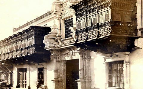 un viejo rabino, que se atribuye a Remembranza en piedra y en su parte superior el escudo de la familia torre tagle también presenta en la fachada dos hermosos balcones tallados en madera. en el interior de la casona se puede observar elegantes salones y opulentas escalinatas.